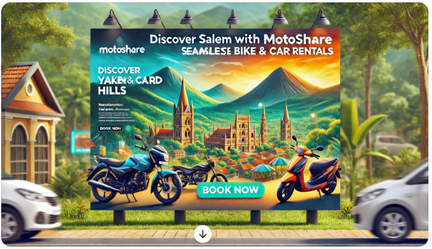 Exploring Salem has never been easier! With Motoshare’s convenient bike and car rental services, you can enjoy the freedom of discovering the city at your own pace. Book your ride today and embark on an unforgettable journey in the heart of Tamil Nadu.