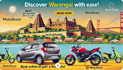 Warangal, a city steeped in history and adorned with architectural marvels, offers a perfect blend of culture, heritage, and scenic beauty. Whether you’re a local looking to explore hidden gems or a traveler diving into Warangal’s splendor, Motoshare simplifies your journey with its seamless bike and car rental services.