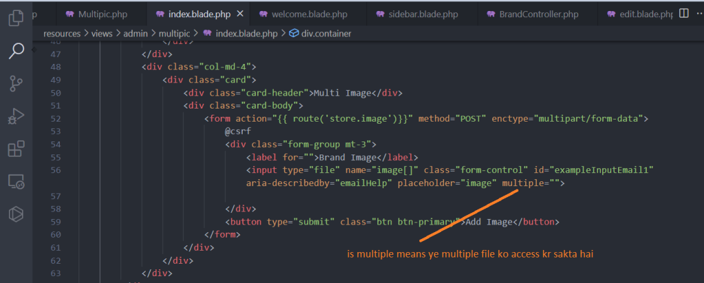 Route::post('/multi/add', [BrandController::class,'StoreImg'])->name('store.image');