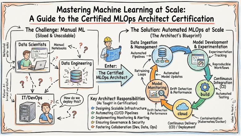 The Certified MLOps Architect designation represents a professional standard for individuals who design and implement end-to-end machine learning lifecycles. It is not merely a theoretical exercise but a production-focused validation of an engineer’s ability to handle data versioning, model orchestration, and automated deployment. In the modern enterprise, this certification exists to prove that a professional can move beyond writing Python scripts to building resilient systems that handle drift, retraining, and governance. It aligns perfectly with the shift toward cloud-native architectures where machine learning models are treated as first-class citizens alongside traditional microservices.