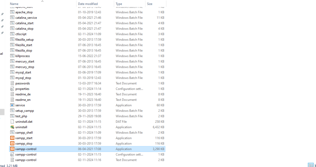 • Open the XAMPP Control Panel (xampp-control.exe) from the installation folder or Start Menu.