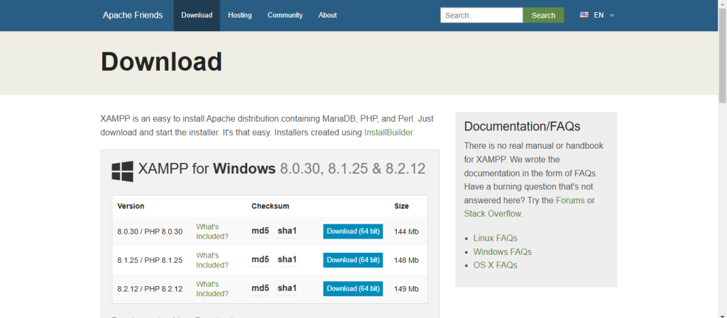Visit the official XAMPP website: https://www.apachefriends.org/download.html